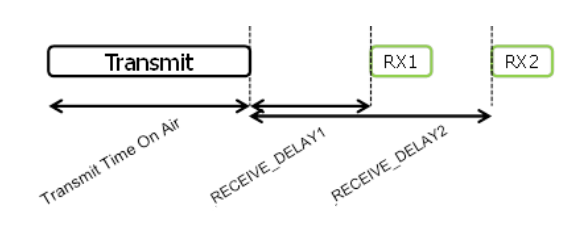 每个上行传输后终端都要(MUST)开两个短的接收窗口。接收窗口开始时间的规定,是以传输结束时间为参考。